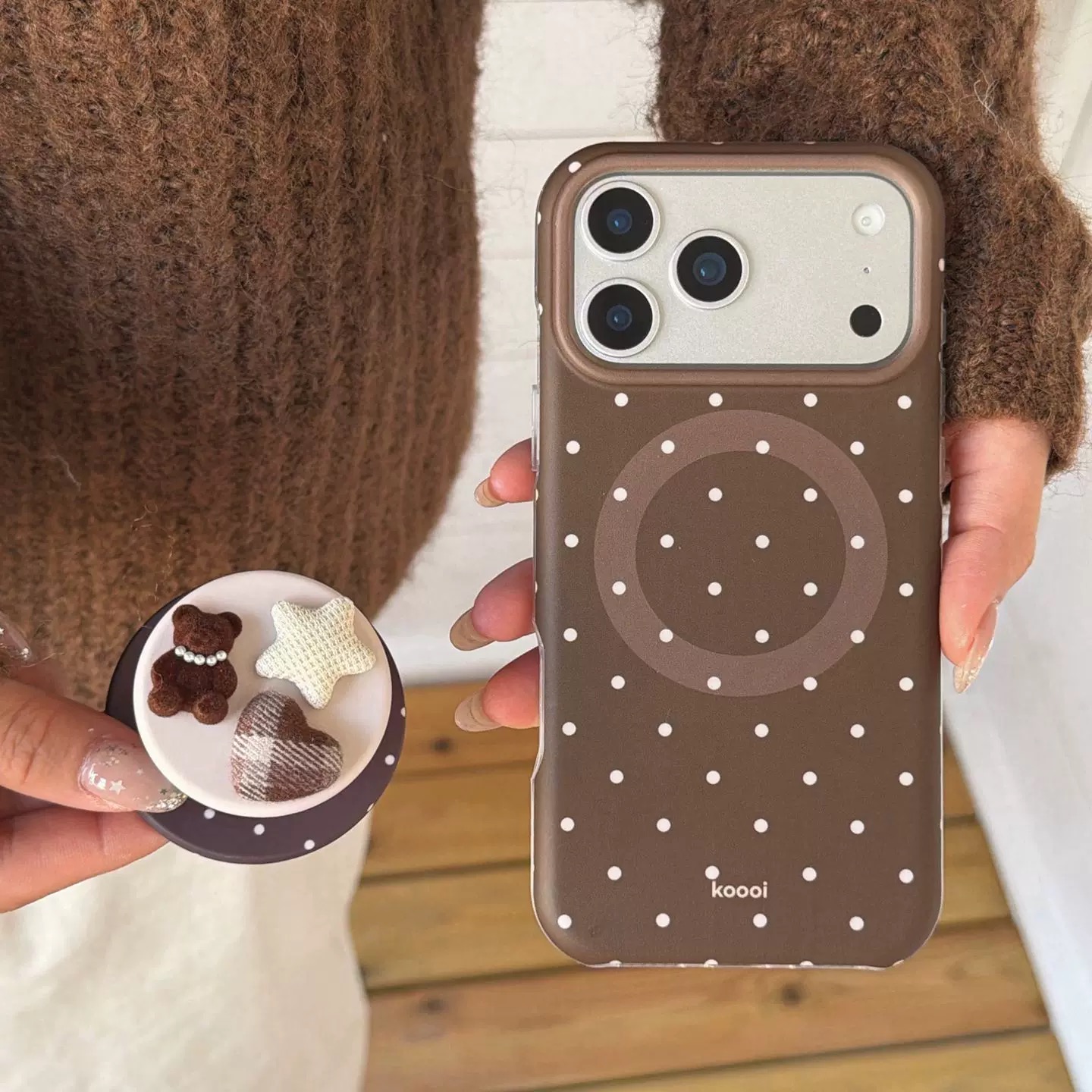 クマちゃんスタードット柄 magsafe グリップ iphoneケース【Magsafe対応】