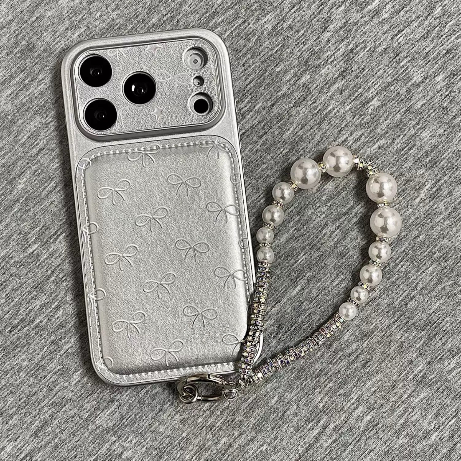 シルバーリボン柄 ストラップ iphoneケース