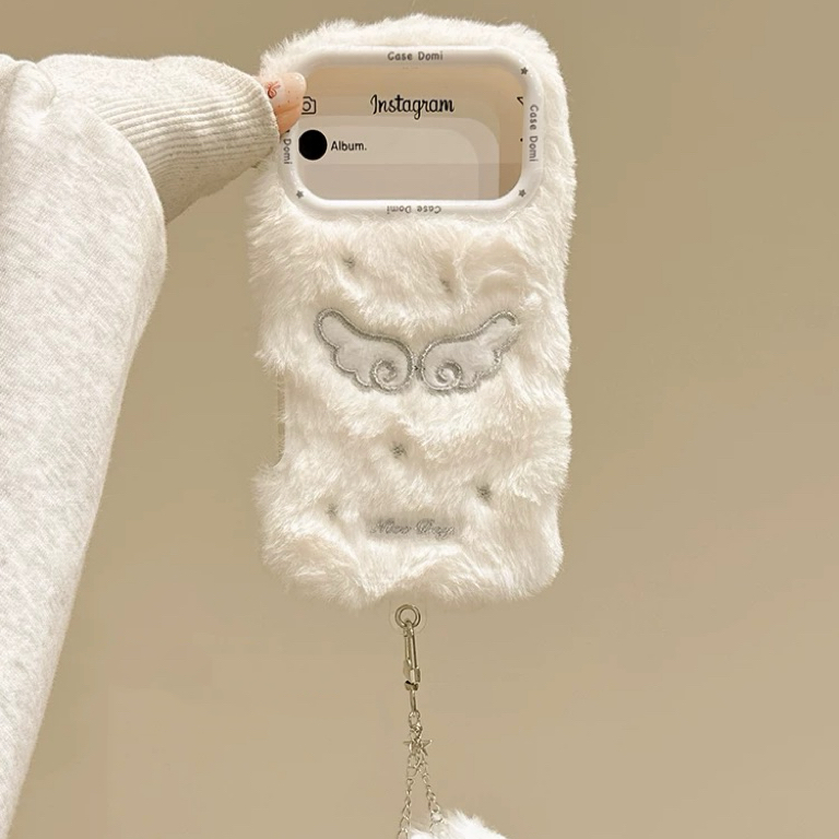 White wing fur strap iphoneケース