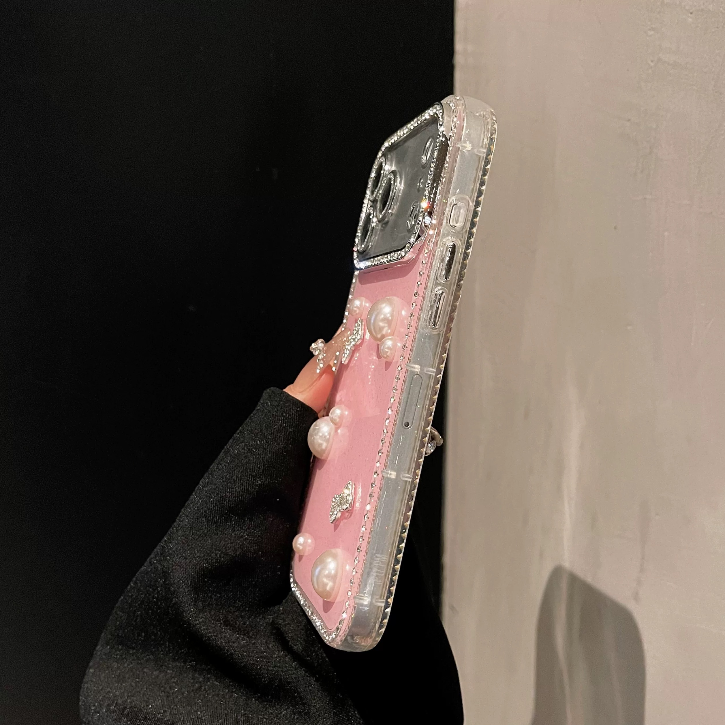 Pearl ribbon glitter jewel iphoneケース【DIYシール付き】