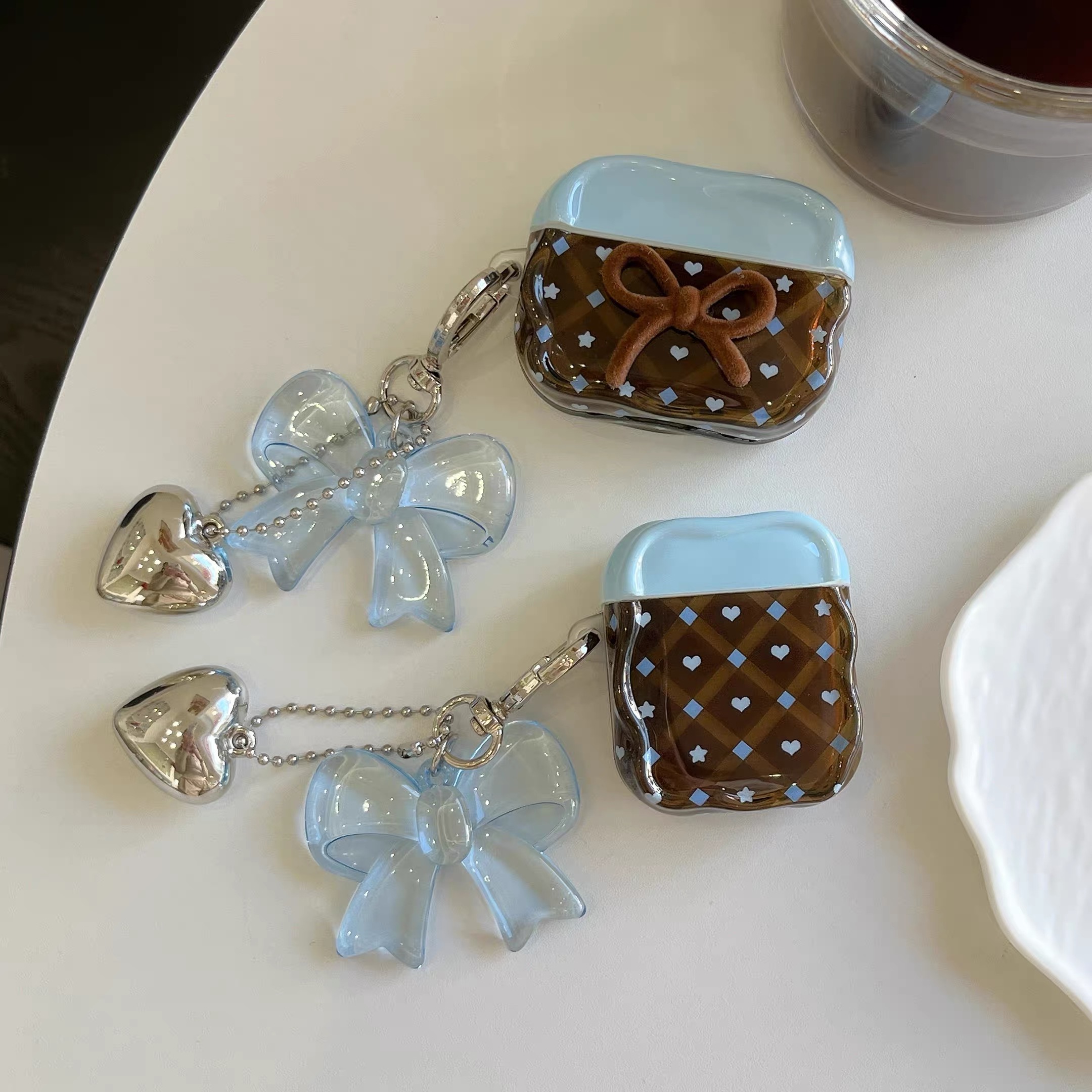Brown blue ribbon strap airpodsケース