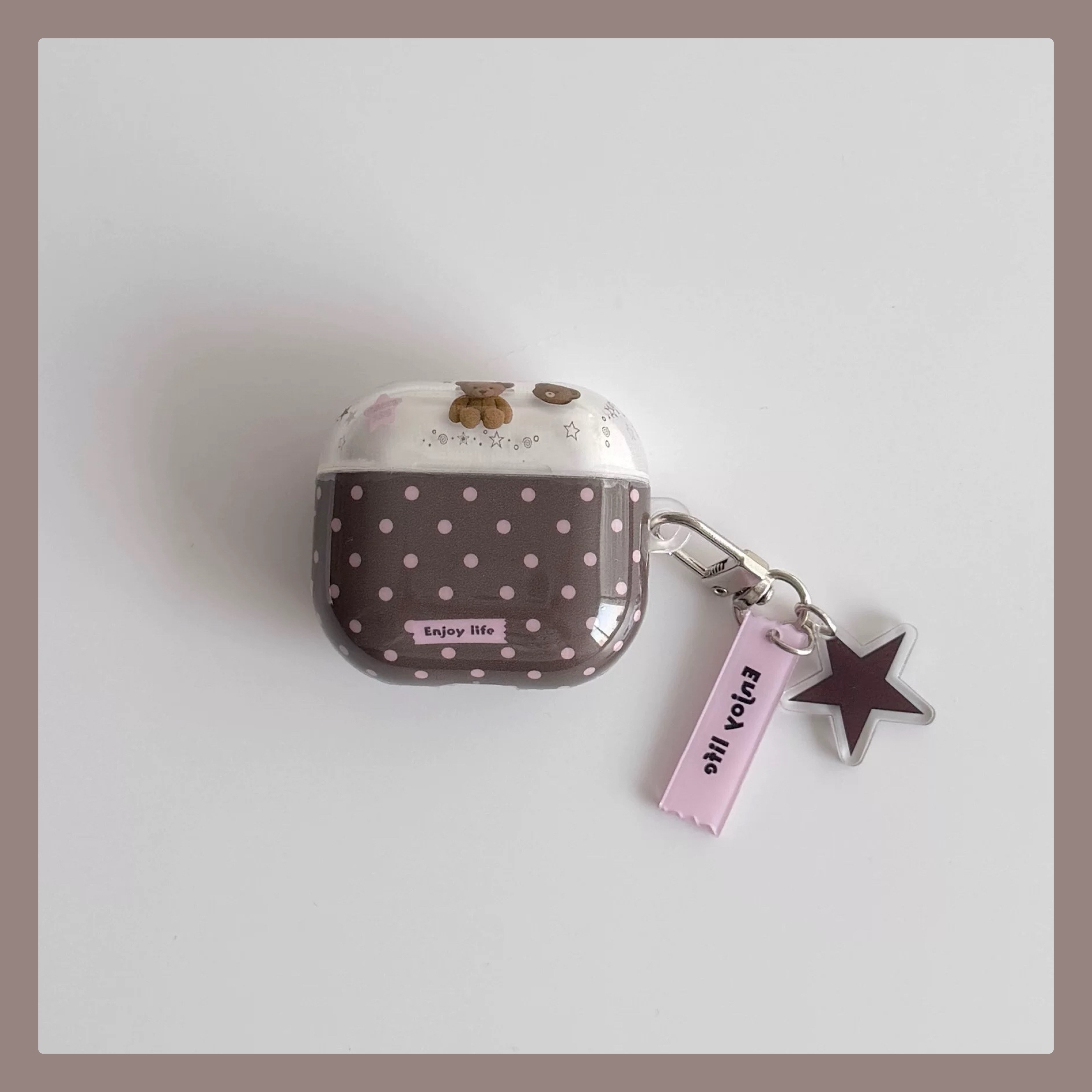 Brown dot bear strap airpodsケース