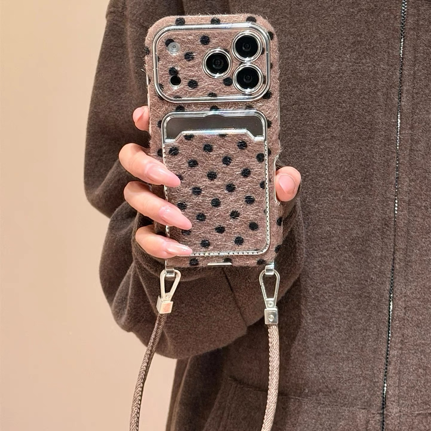 Brown black dot strap iphoneケース
