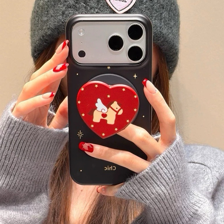 Black red heart horse magsafe grip iphoneケース【Magsafe対応】