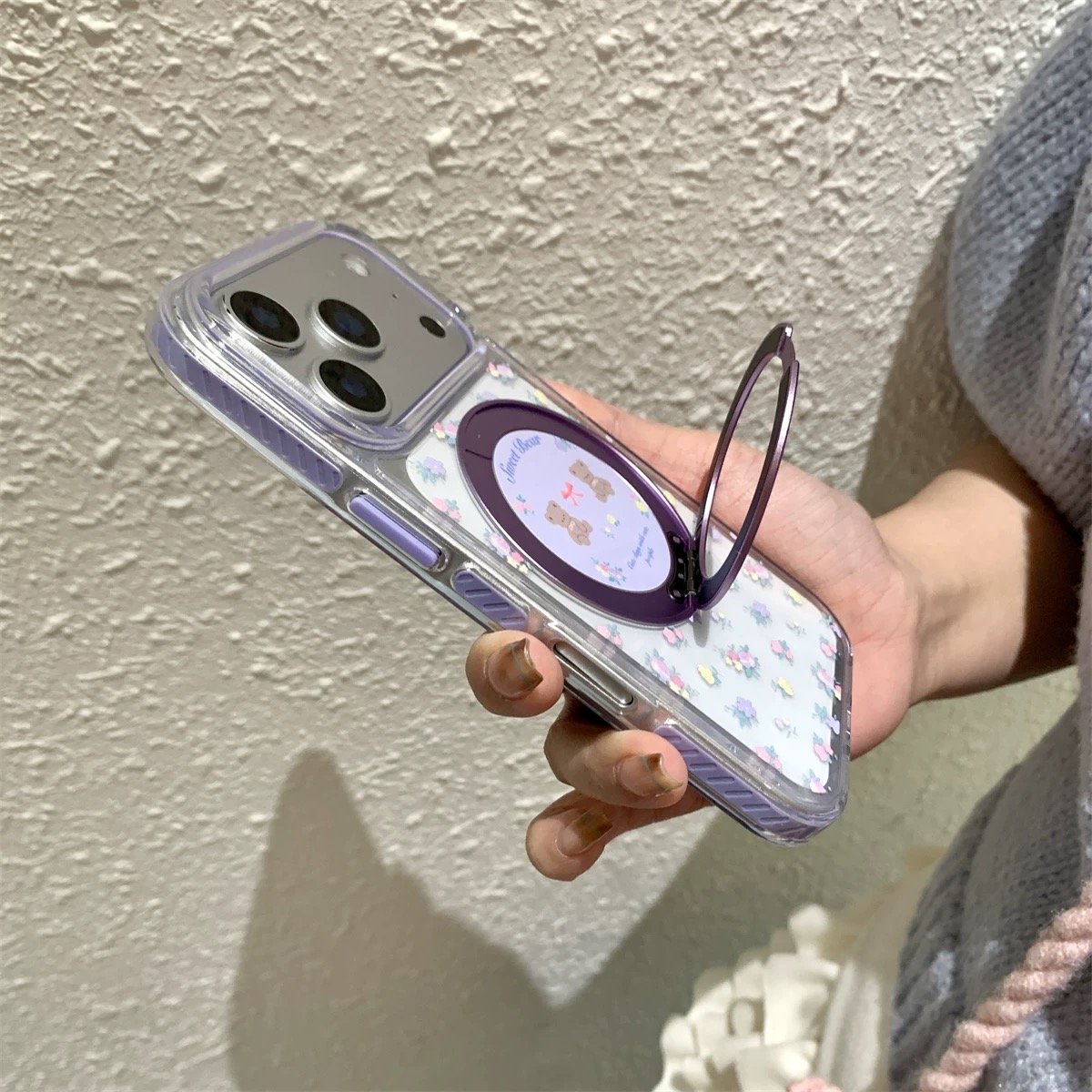Flower bear purple stand iphoneケース