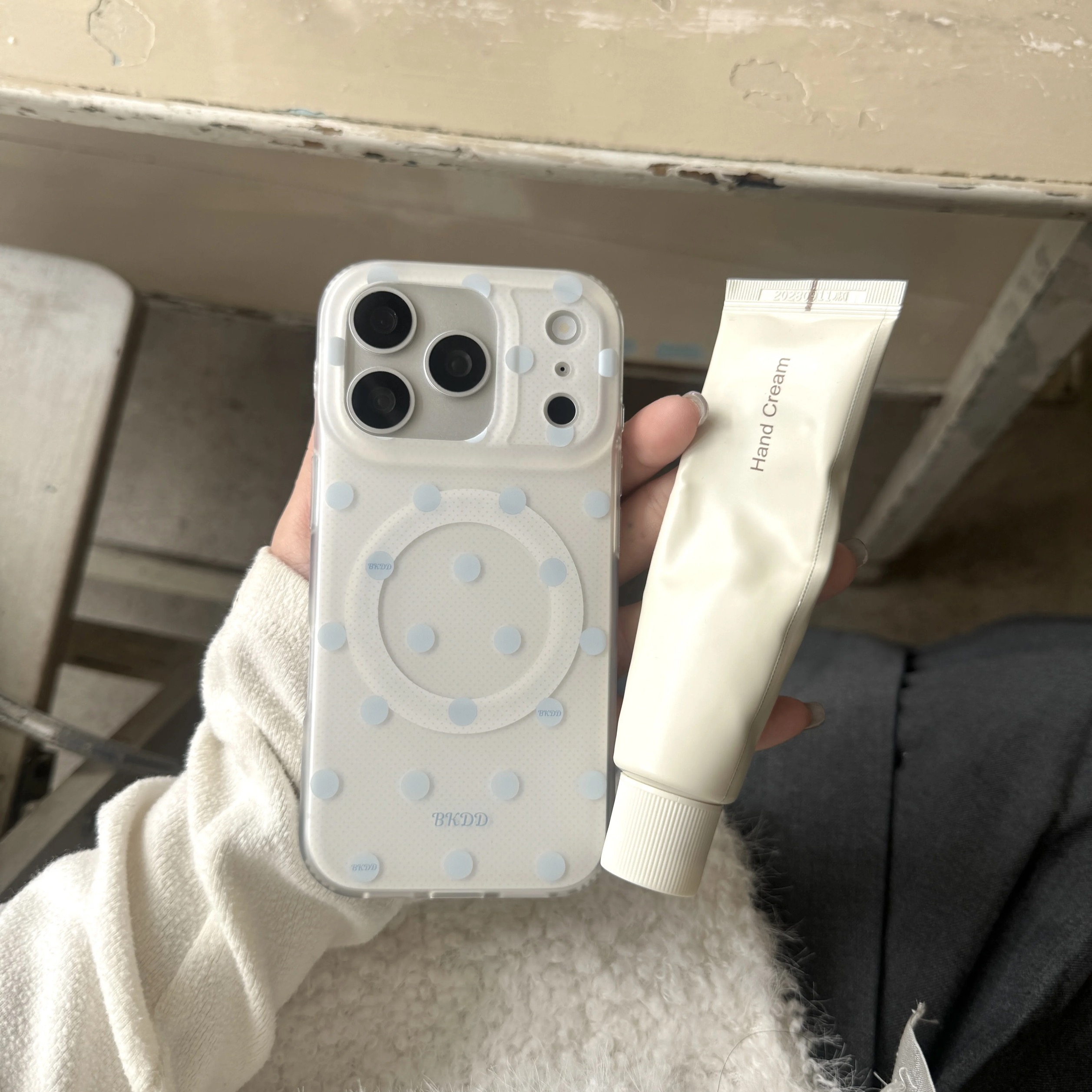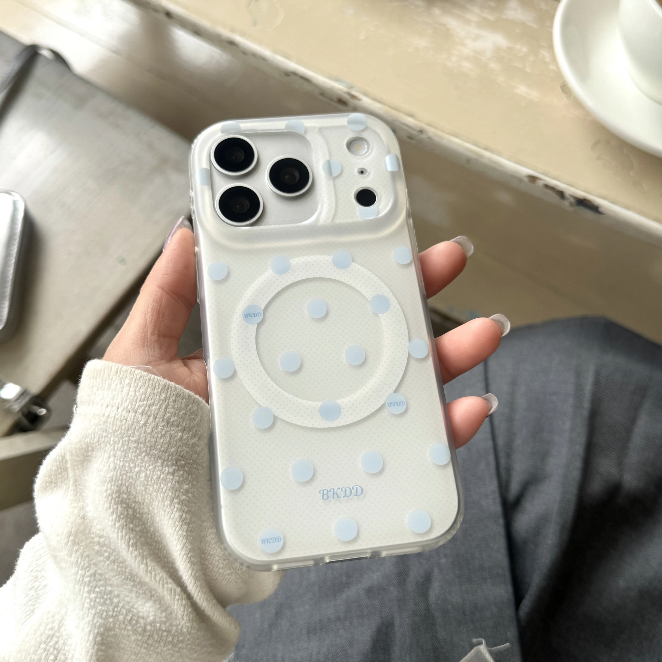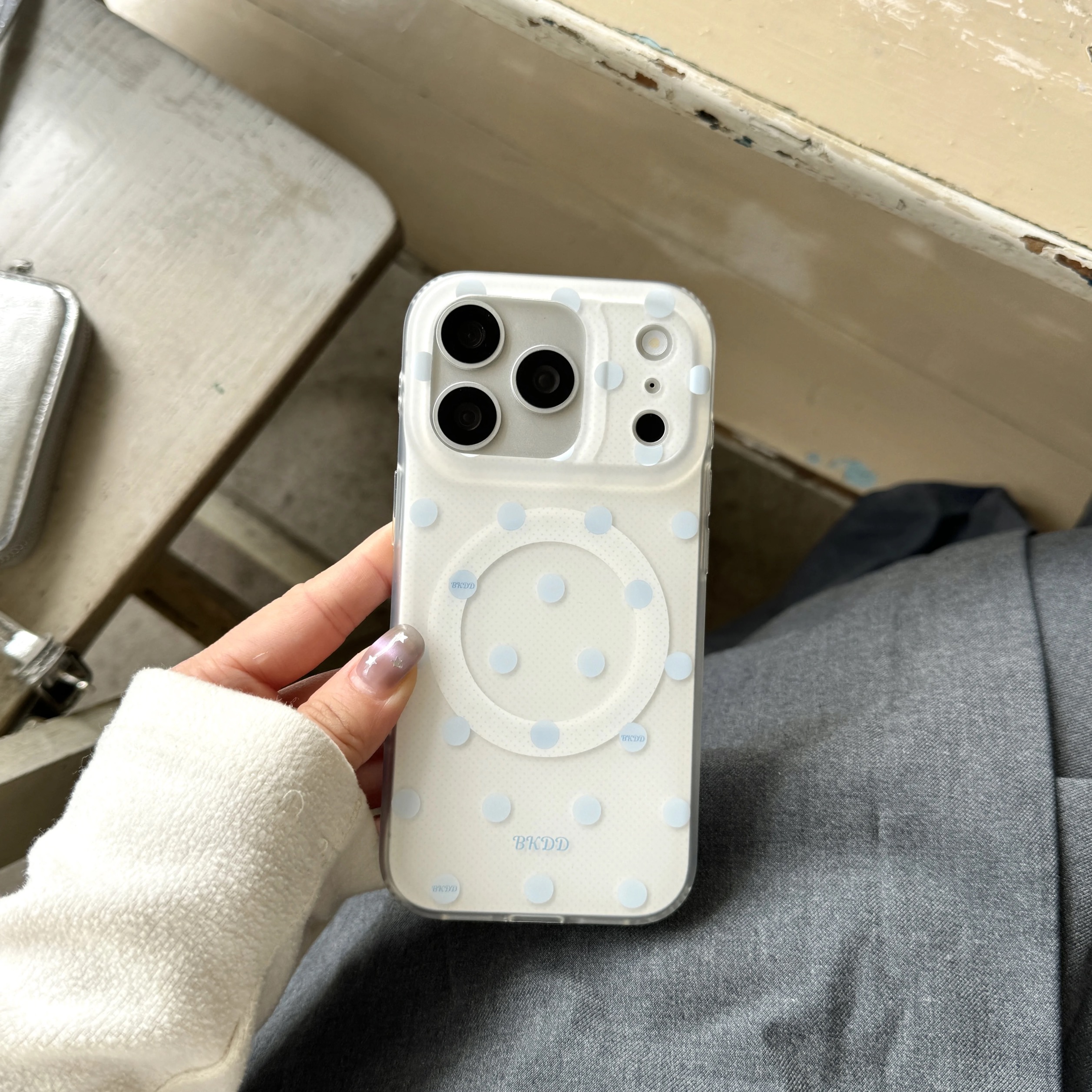 ホワイトブルードット柄 magsafe iphoneケース【Magsafe対応】