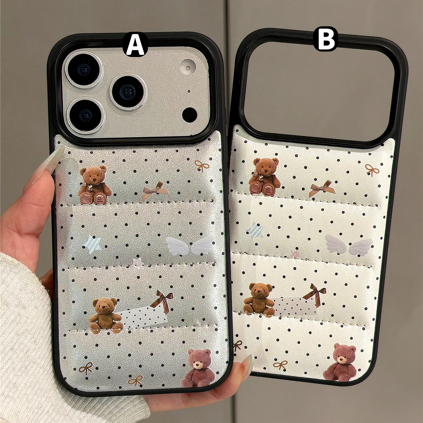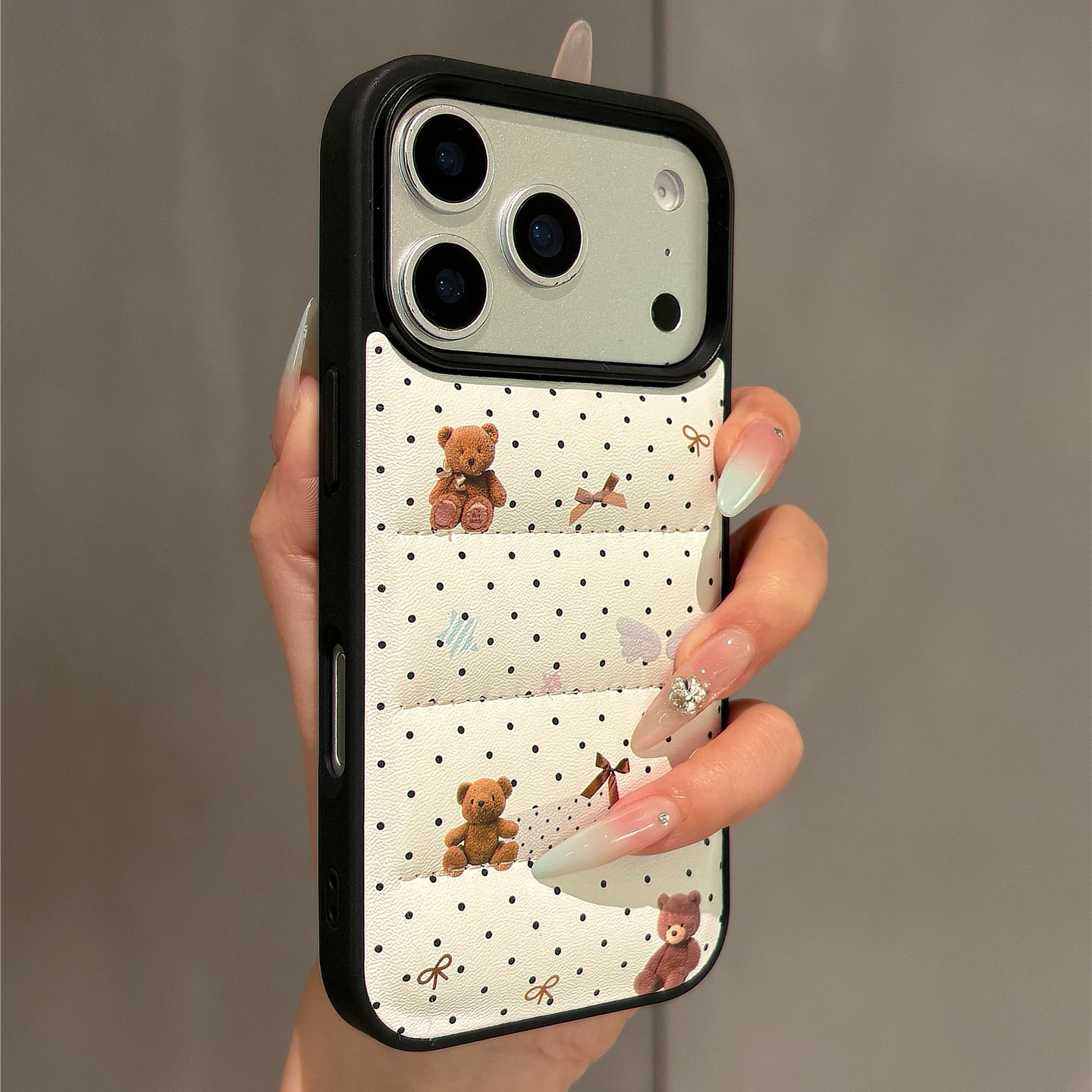 クマちゃんドット柄ダウン iphoneケース