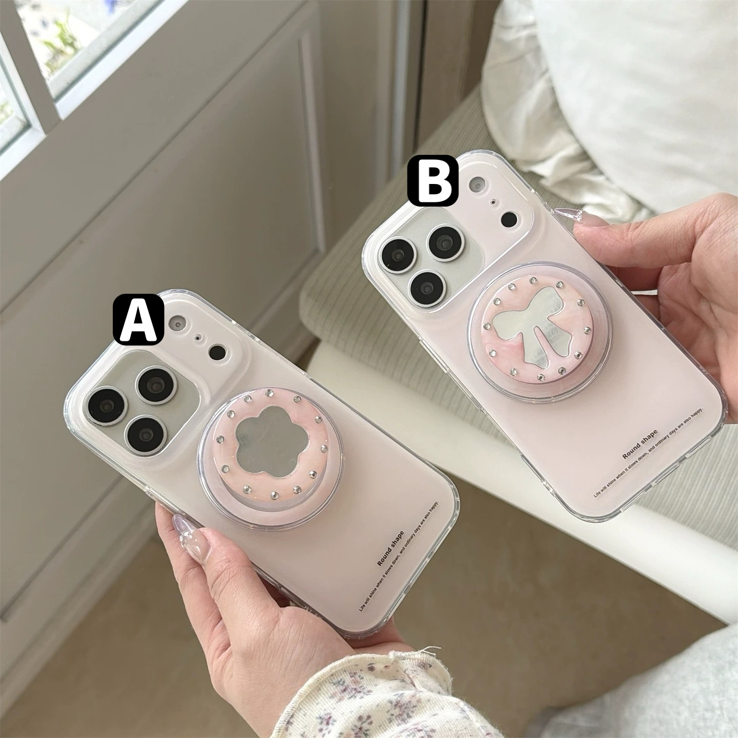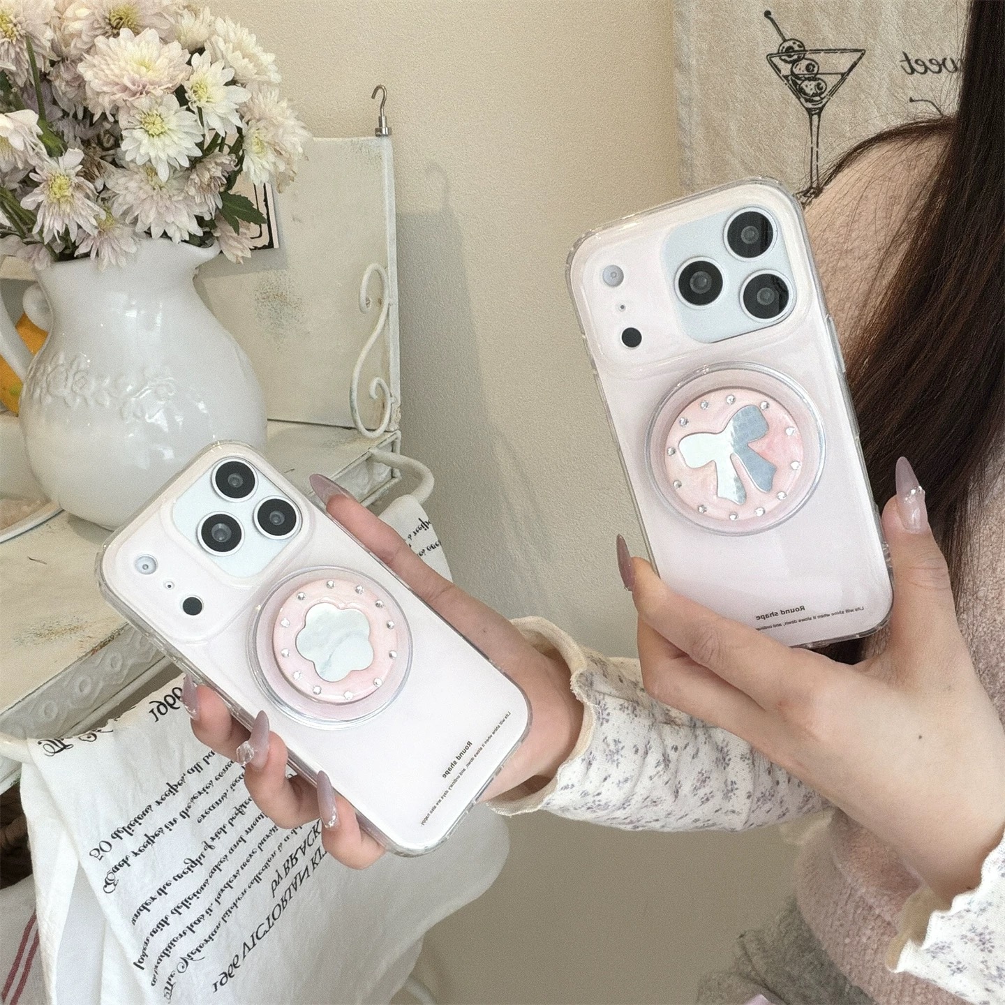 Pink ribbon flower mirror magsafe grip iphoneケース【Magsafe対応】