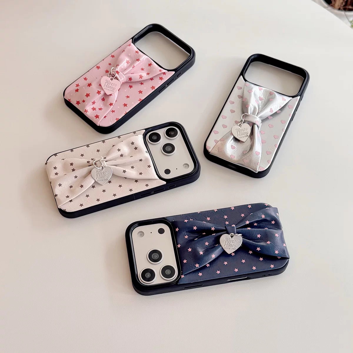 スターハートビッグリボンレザー風 iphoneケース