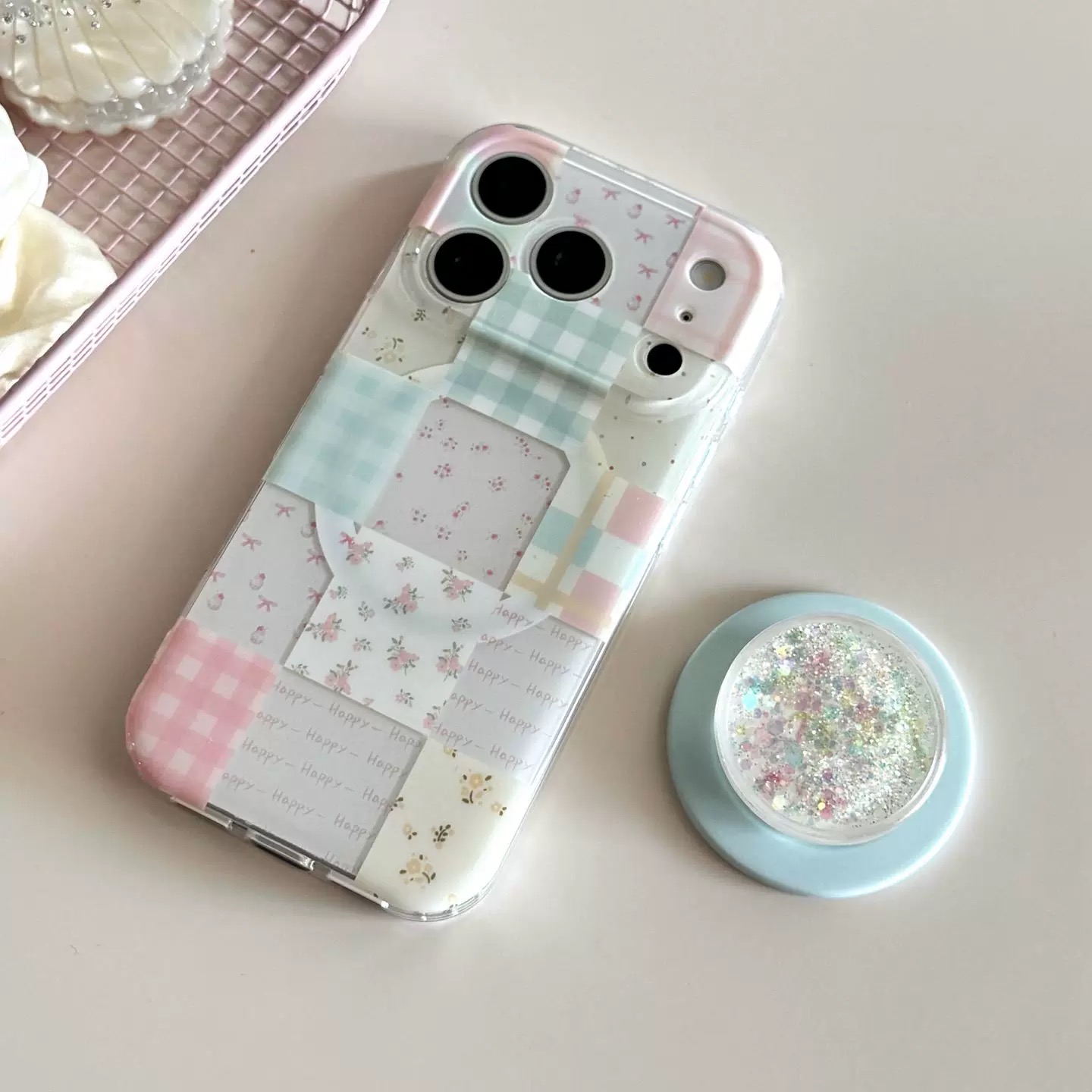 Flower patchwork magsafe grip iphoneケース【Magsafe対応】