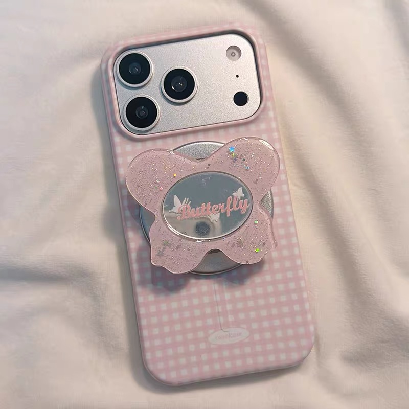 蝶々チェック magsafe グリップ iphoneケース【Magsafe対応】