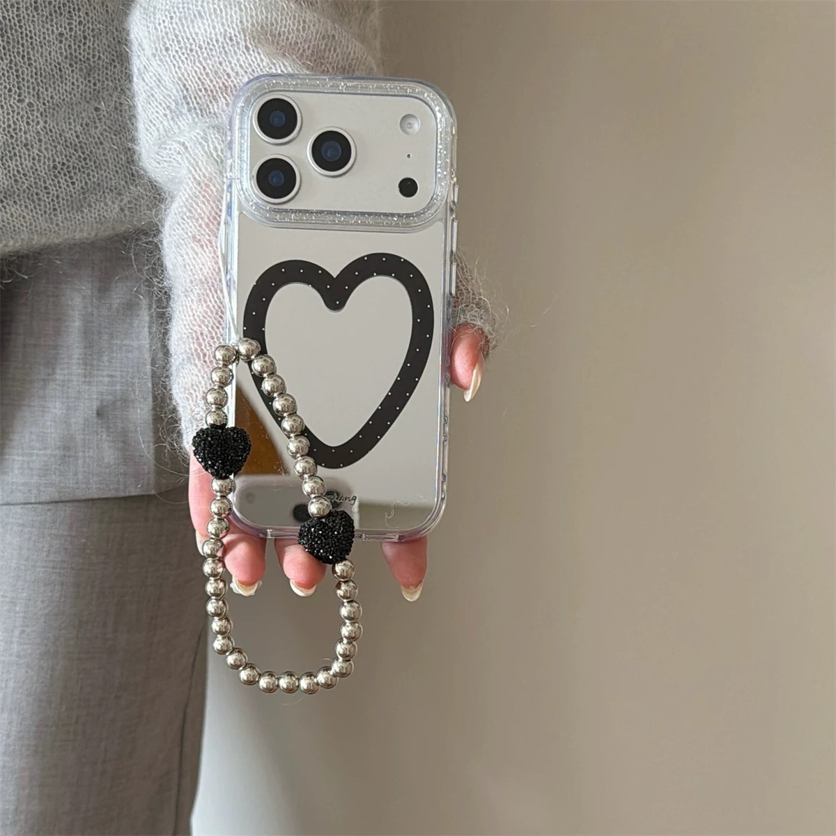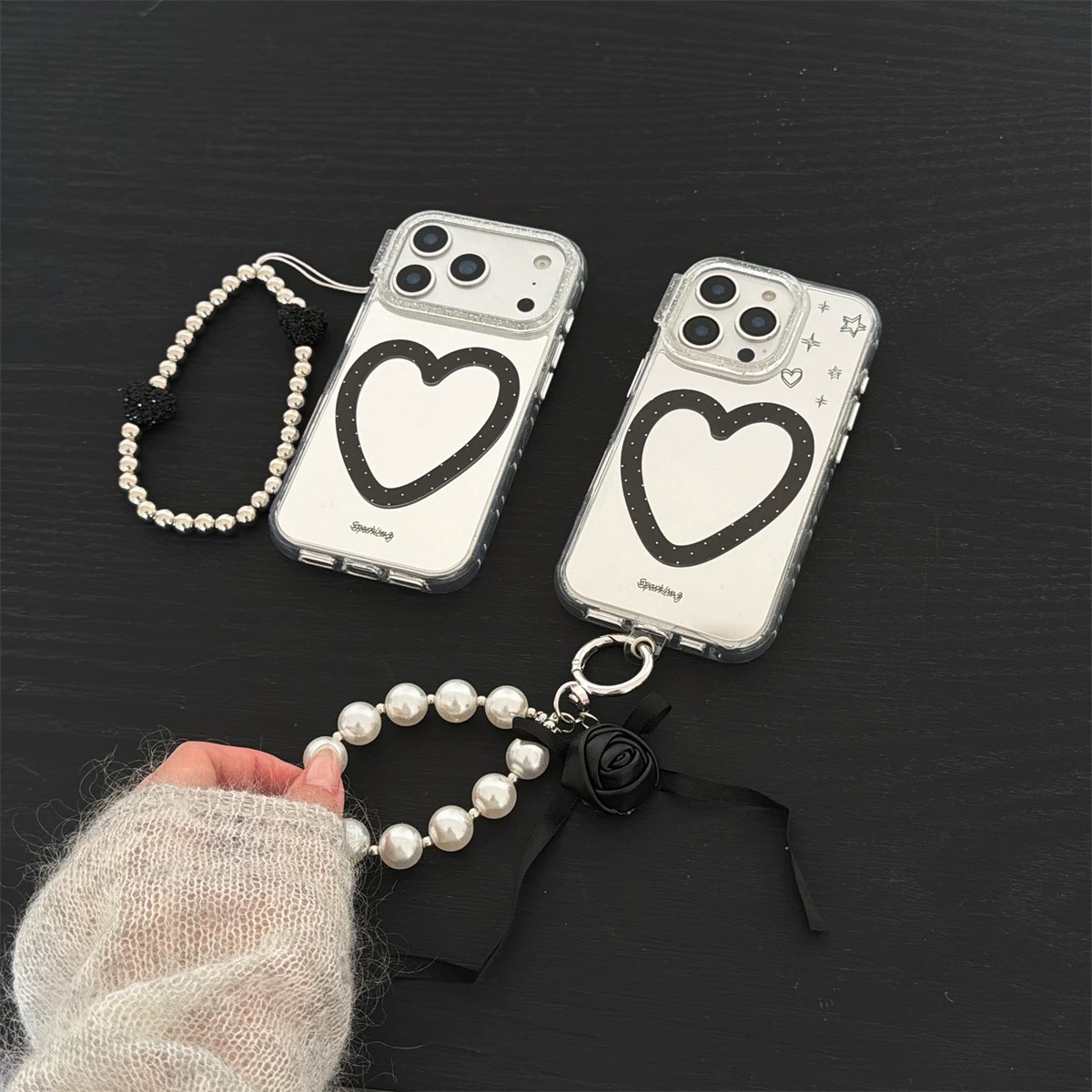 ブラックハートラインシルバーストラップ iphoneケース