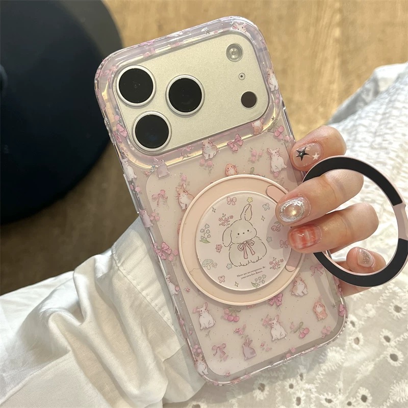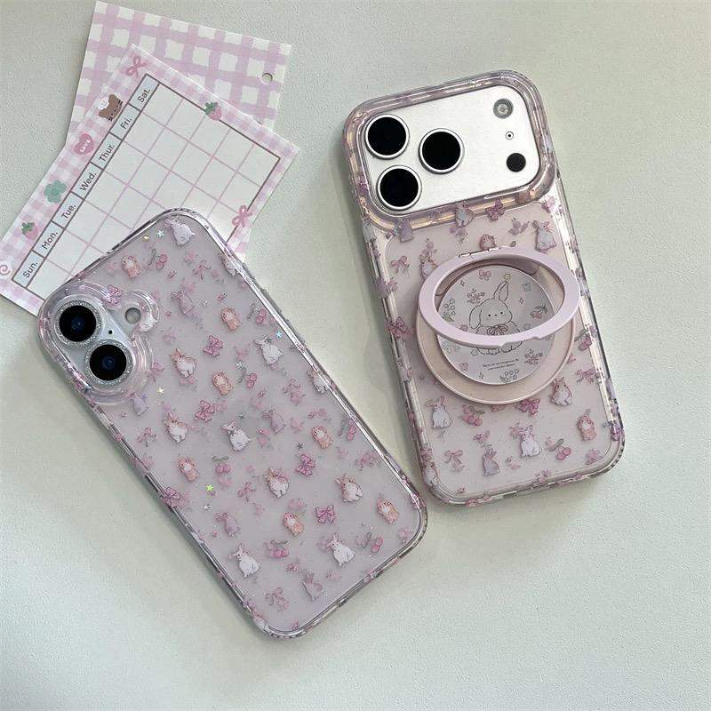 Pink rabbit glitter magsafe stand iphoneケース【Magsafe対応】