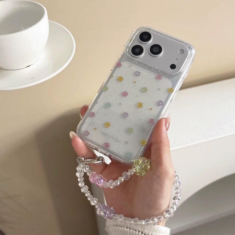 スモールフラワーグリッターストラップ iphoneケース