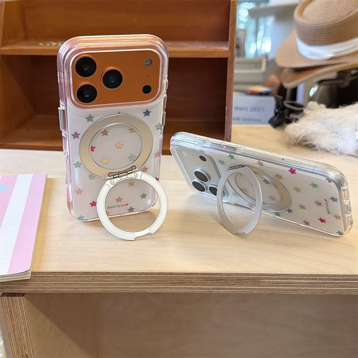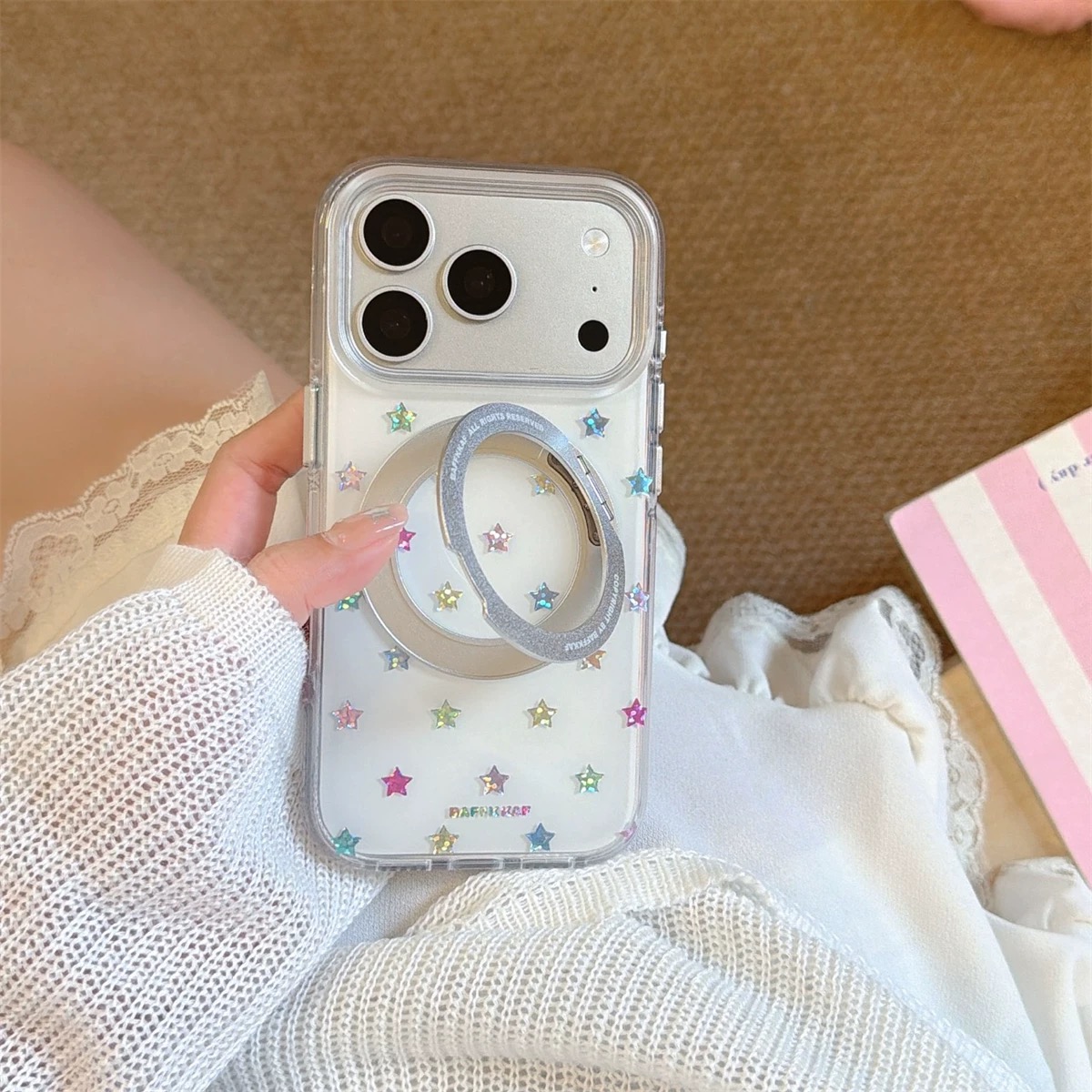 Rainbow star white magsafe stand iphoneケース【Magsafe対応】