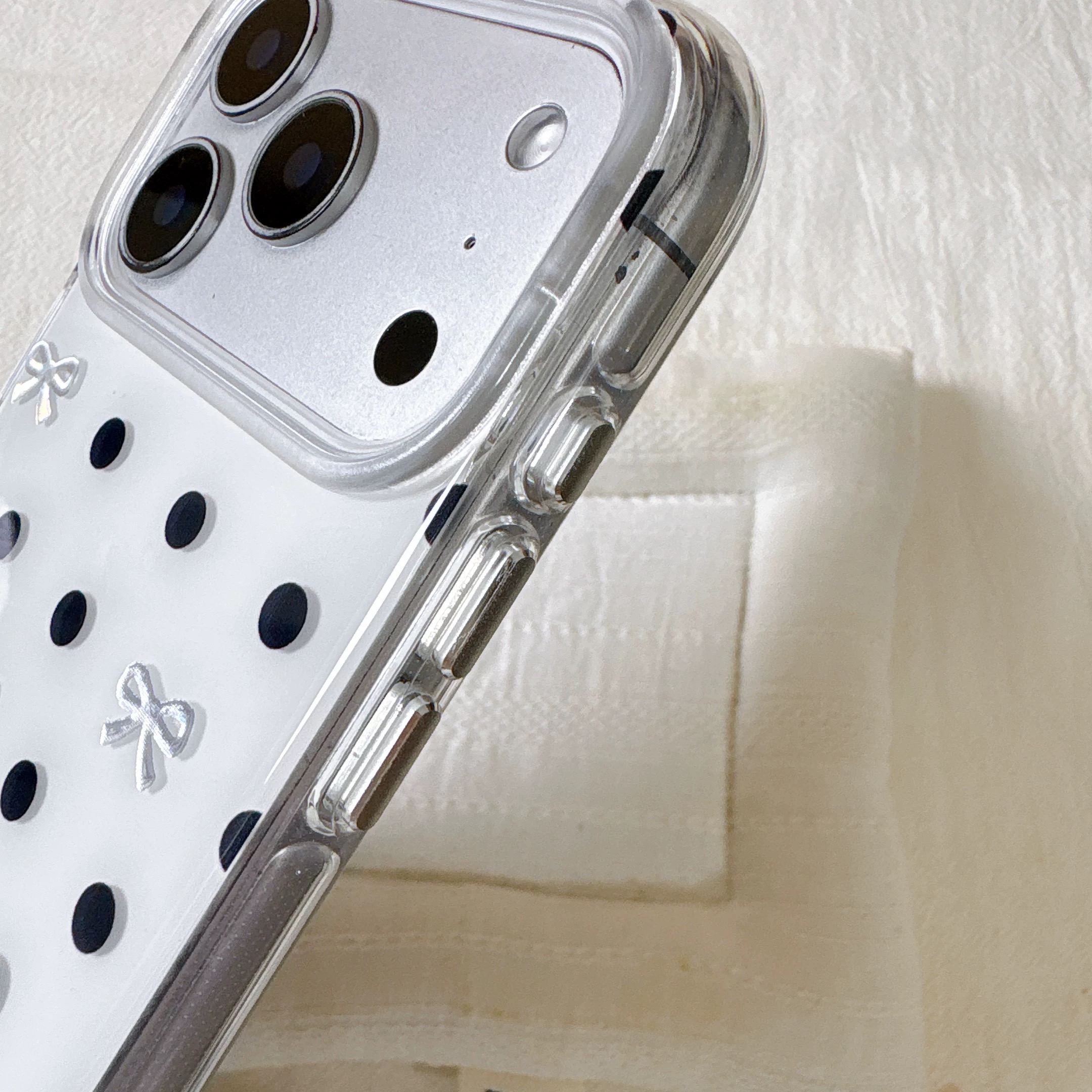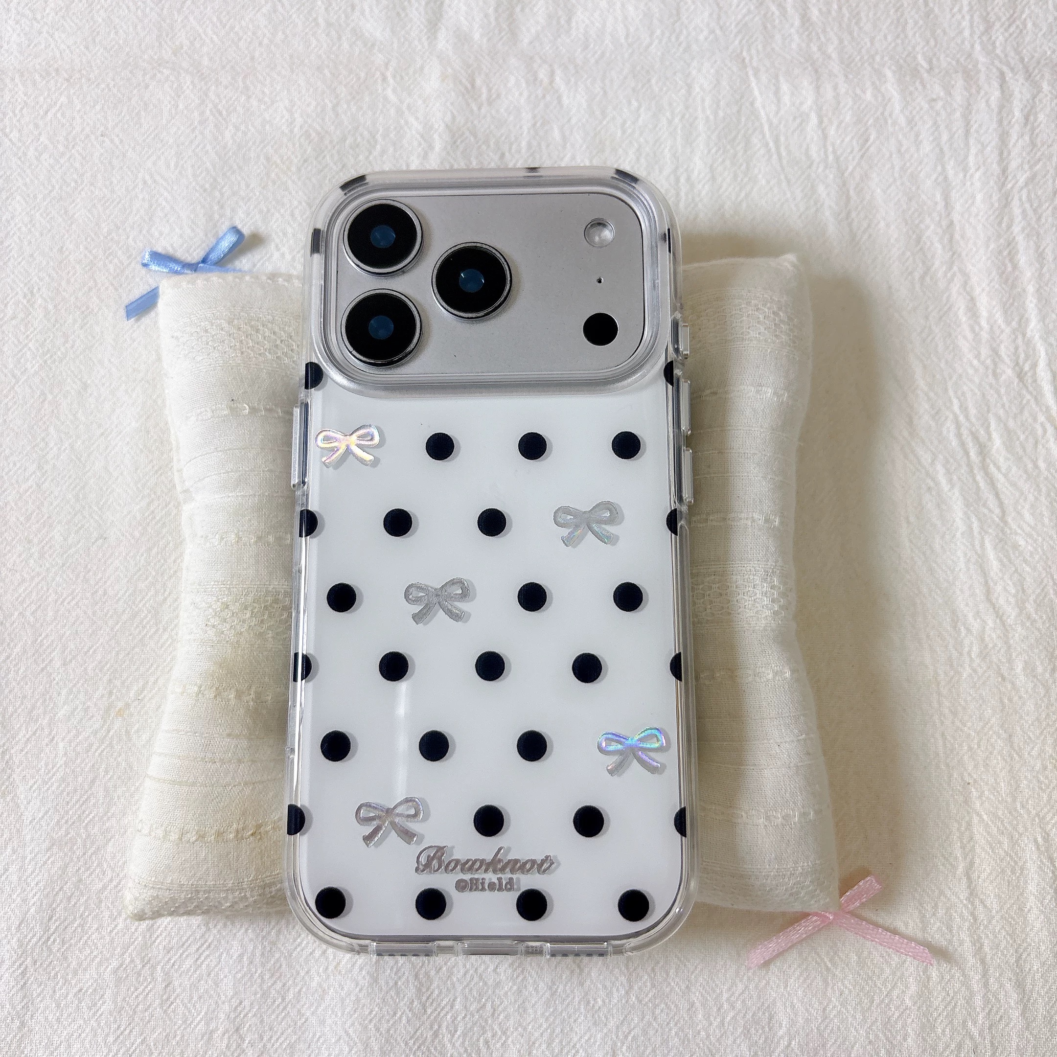 リボンブラックドット柄 iphoneケース