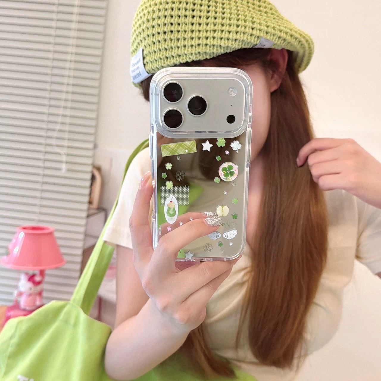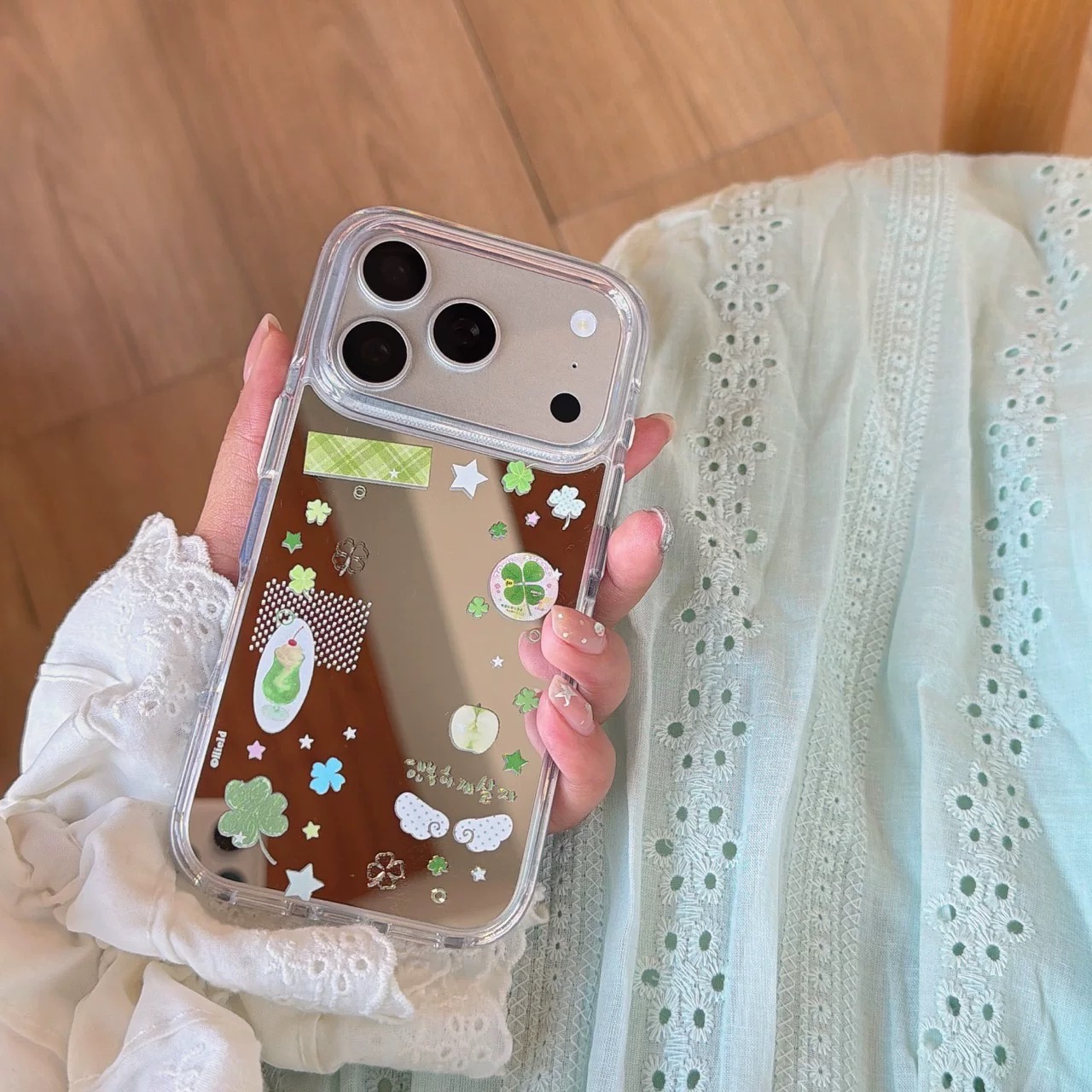クローバー柄シルバーiphoneケース