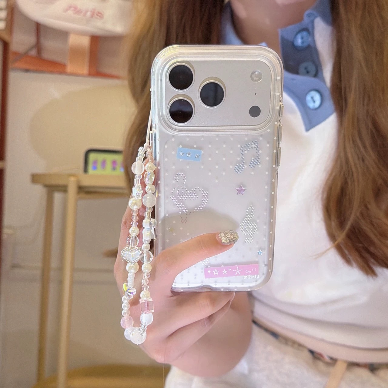 音符ドット柄ストラップ iphoneケース