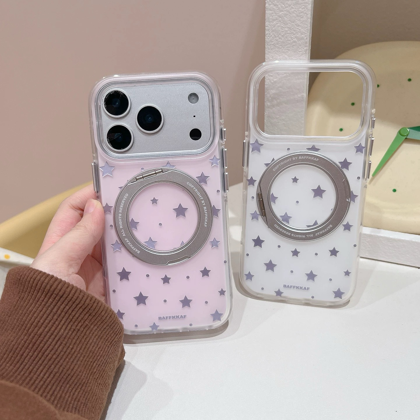 Silver star white pink magsafe stand iphoneケース【Magsafe対応】