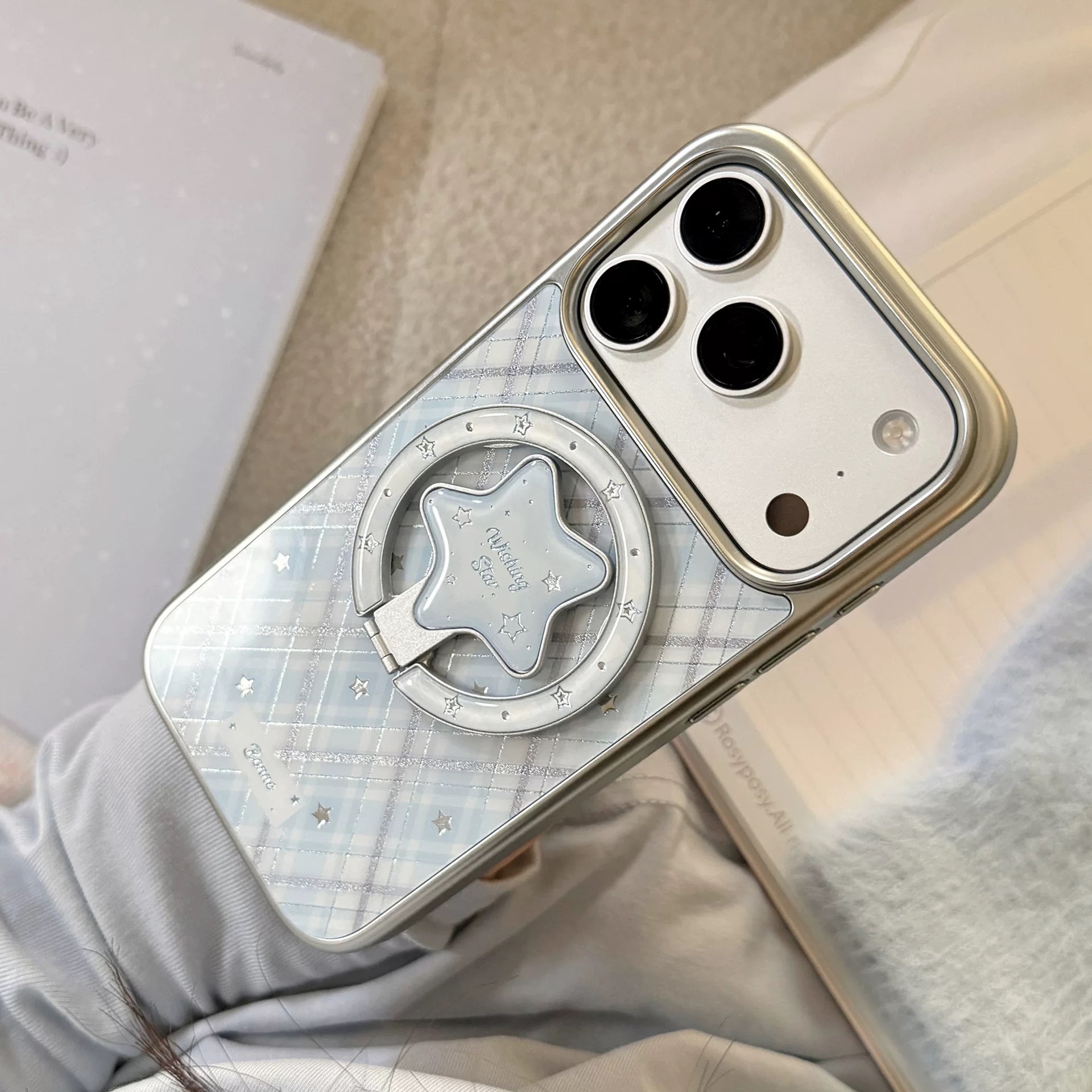 Blue check star magsafe stand iphoneケース【Magsafe対応】