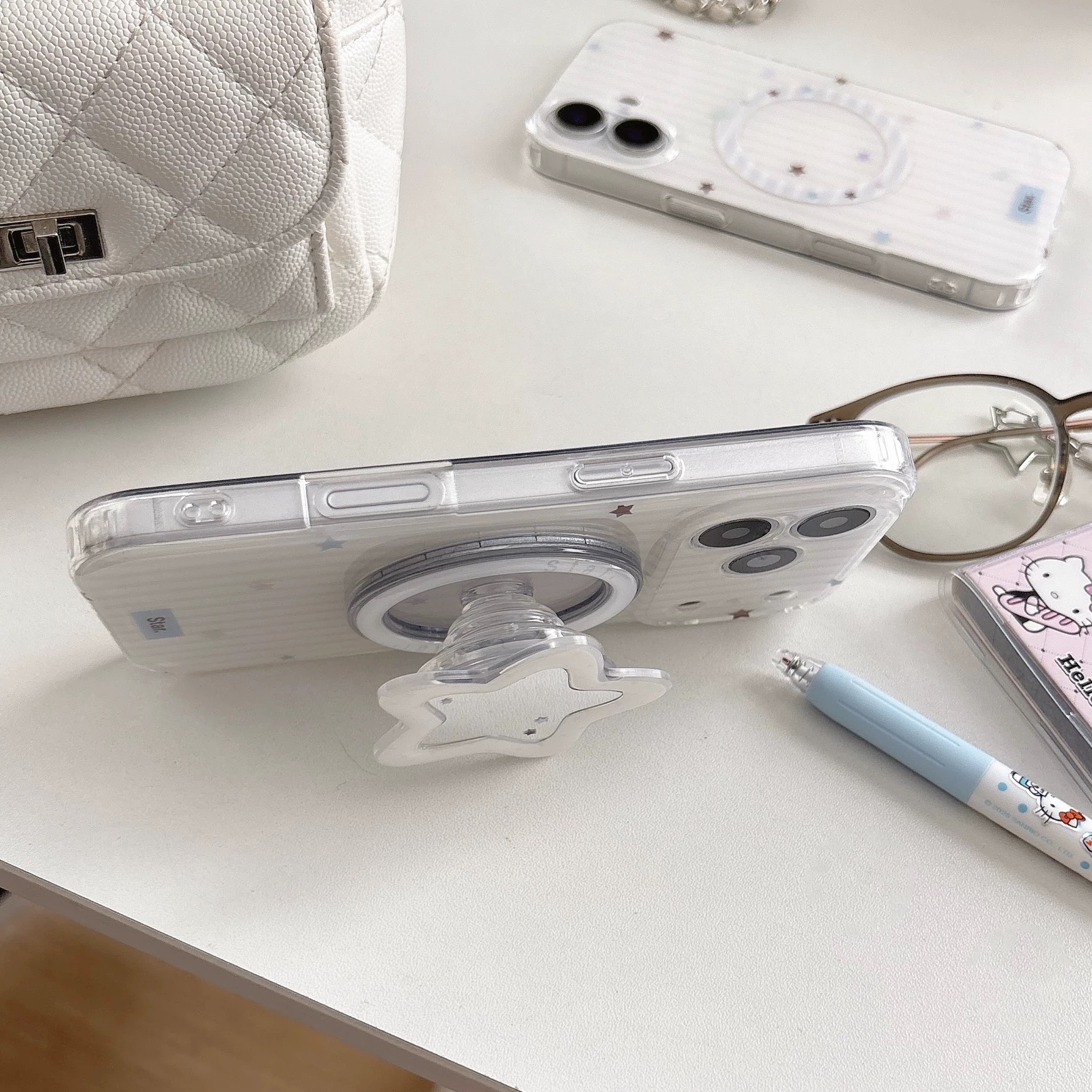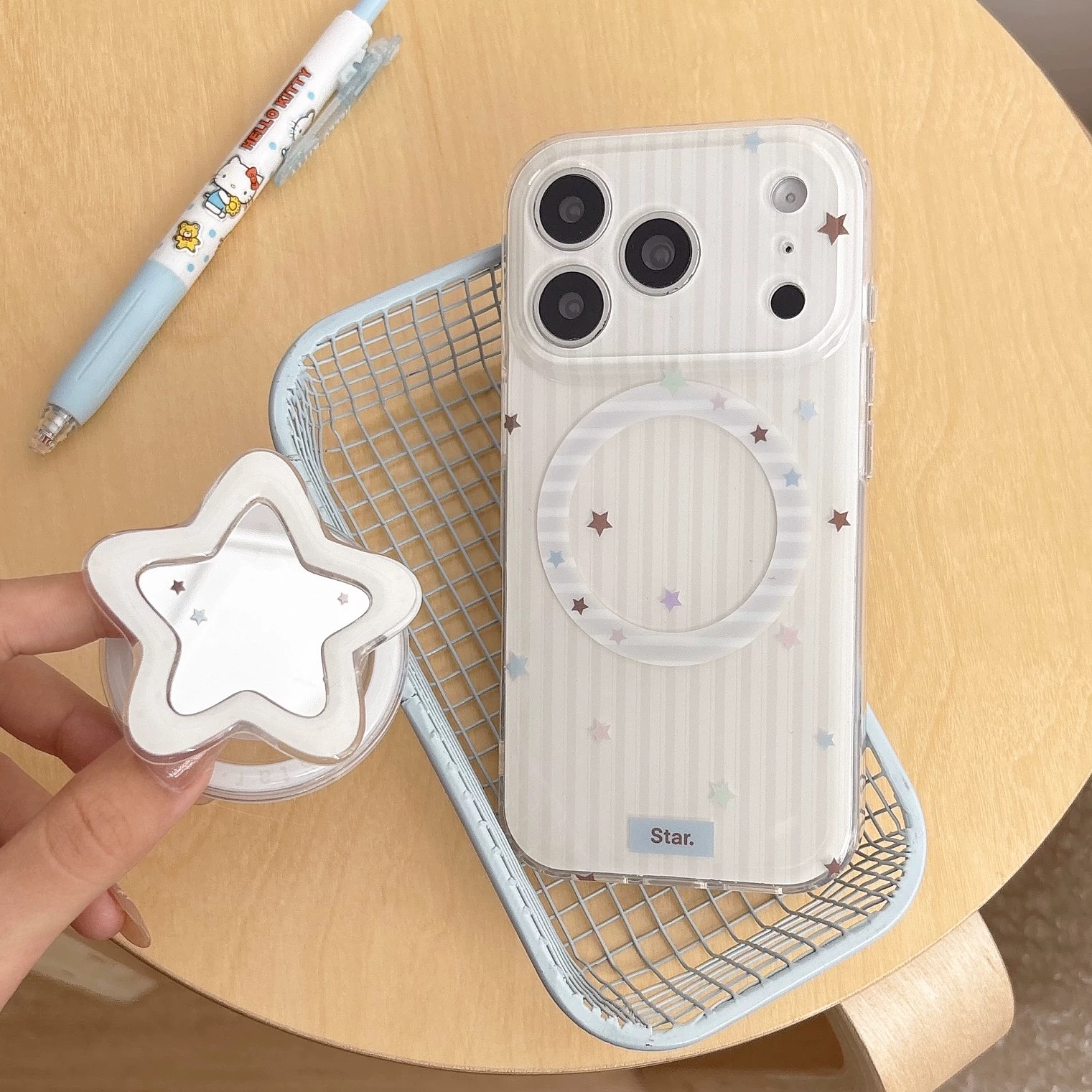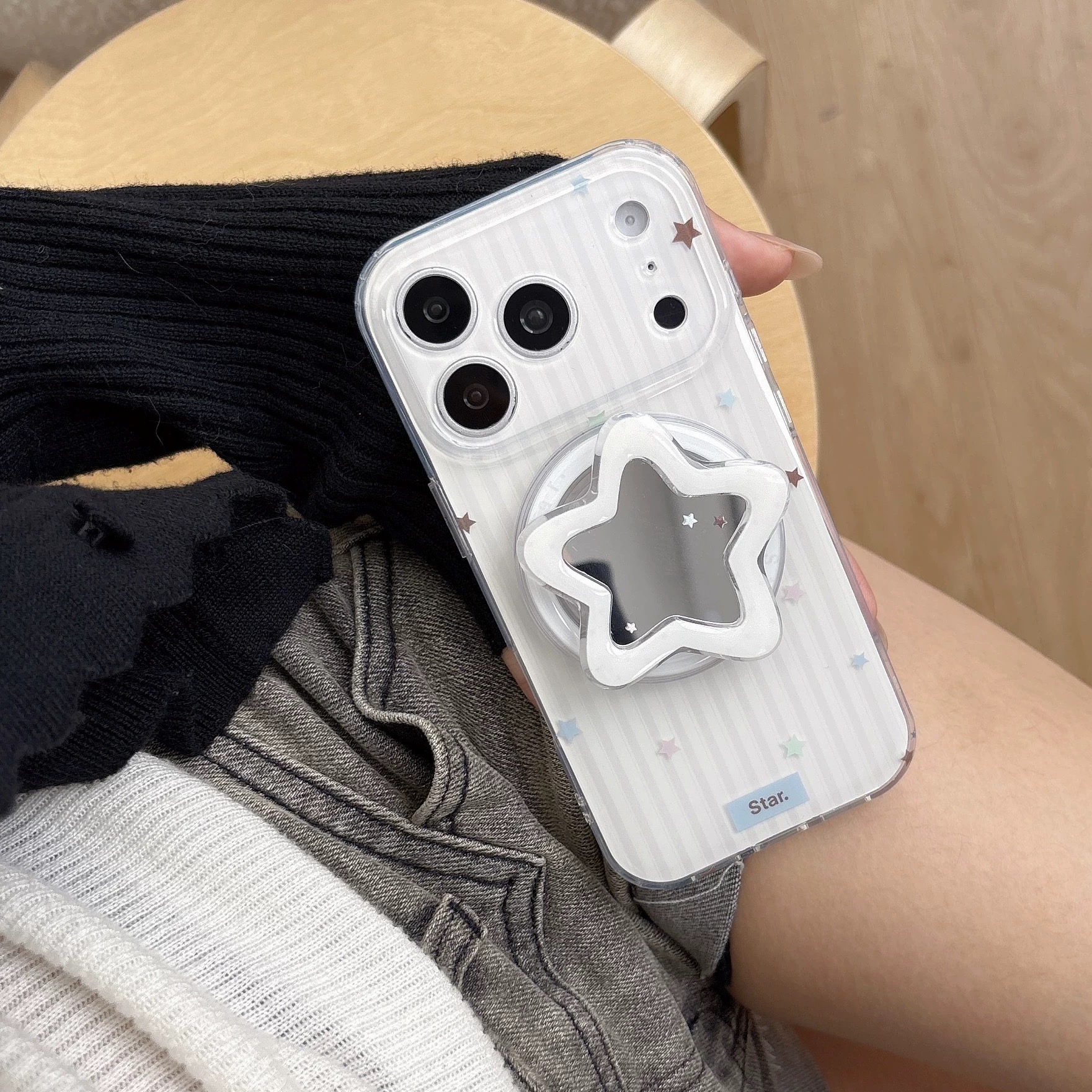 Star stripe mirror magsafe grip iphoneケース【Magsafe対応】
