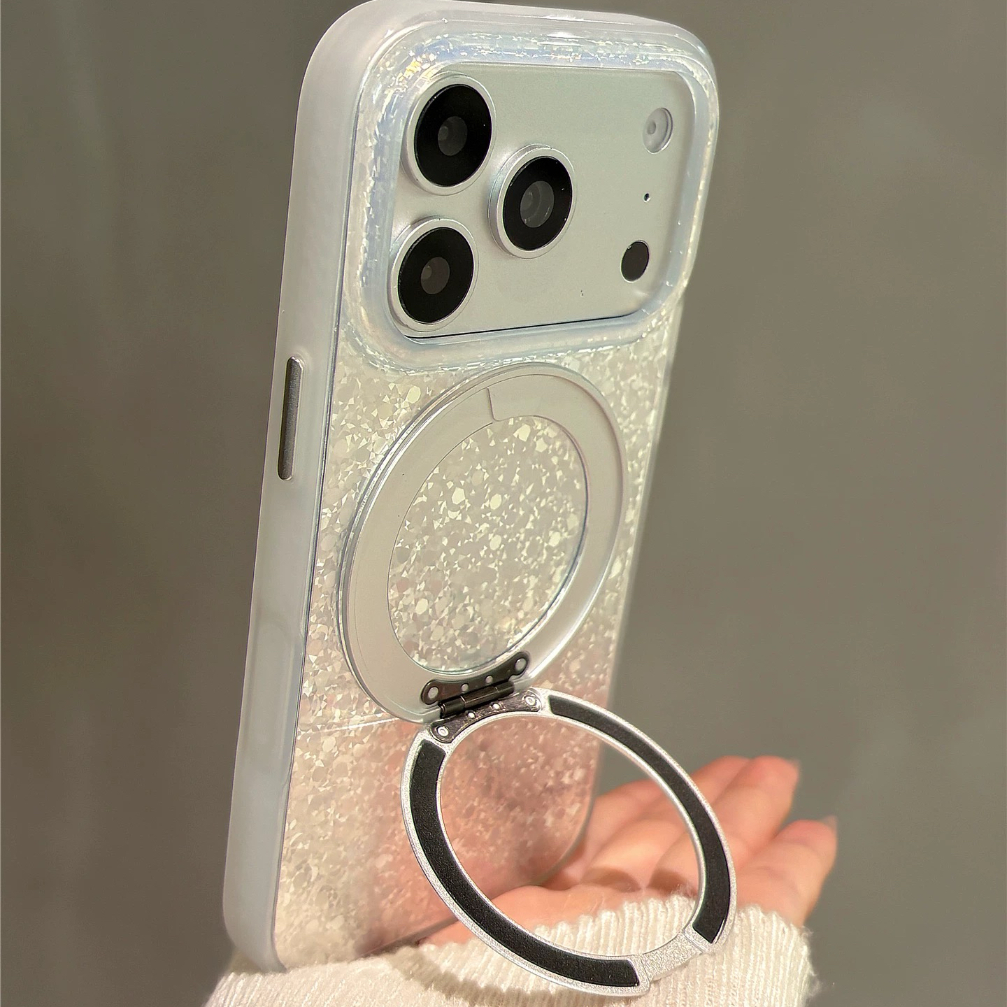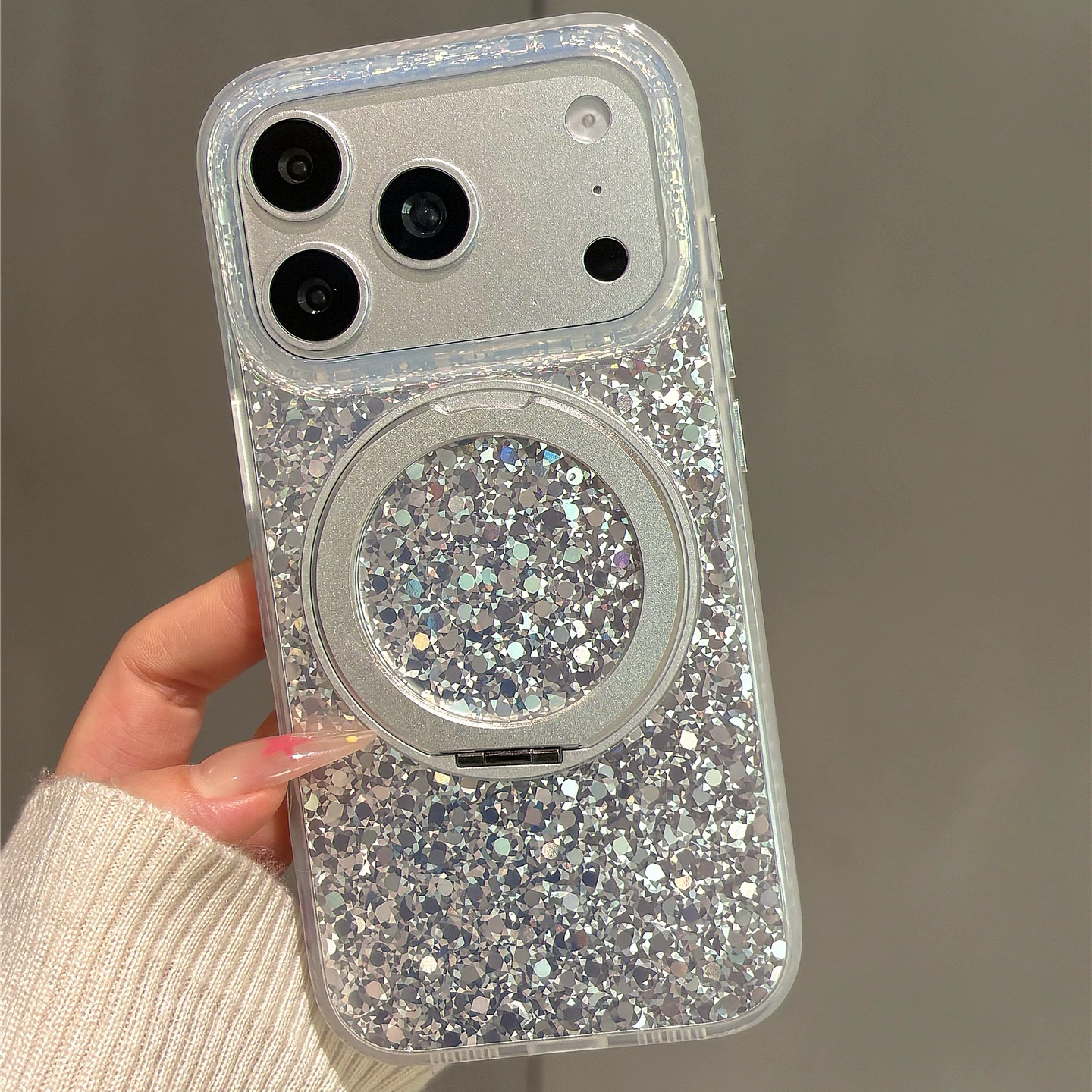 シルバーグリッター magsafe スタンド iphoneケース【Magsafe対応】
