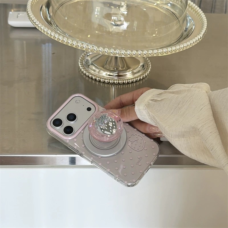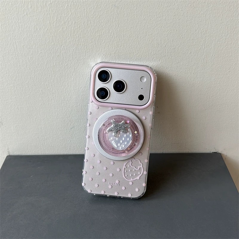 Pink dot strawberry magsafe grip iphoneケース【Magsafe対応】