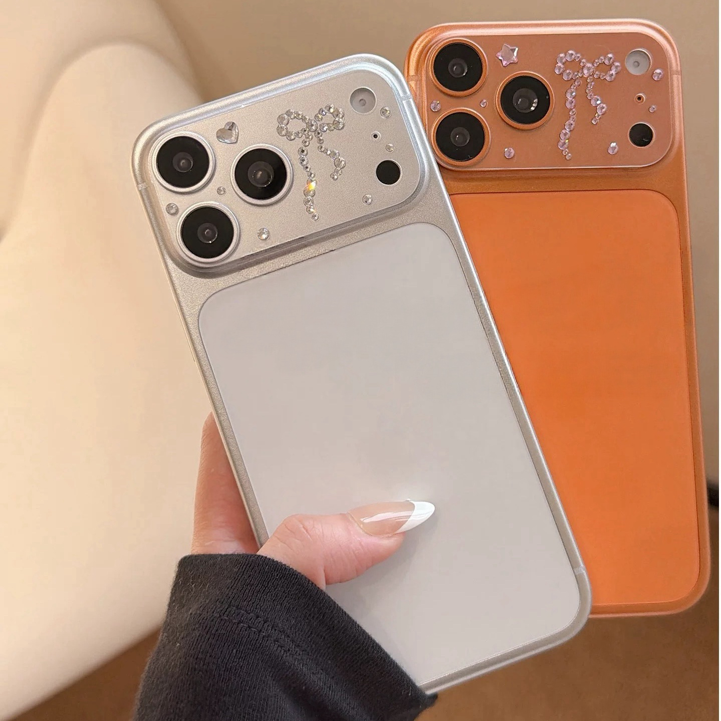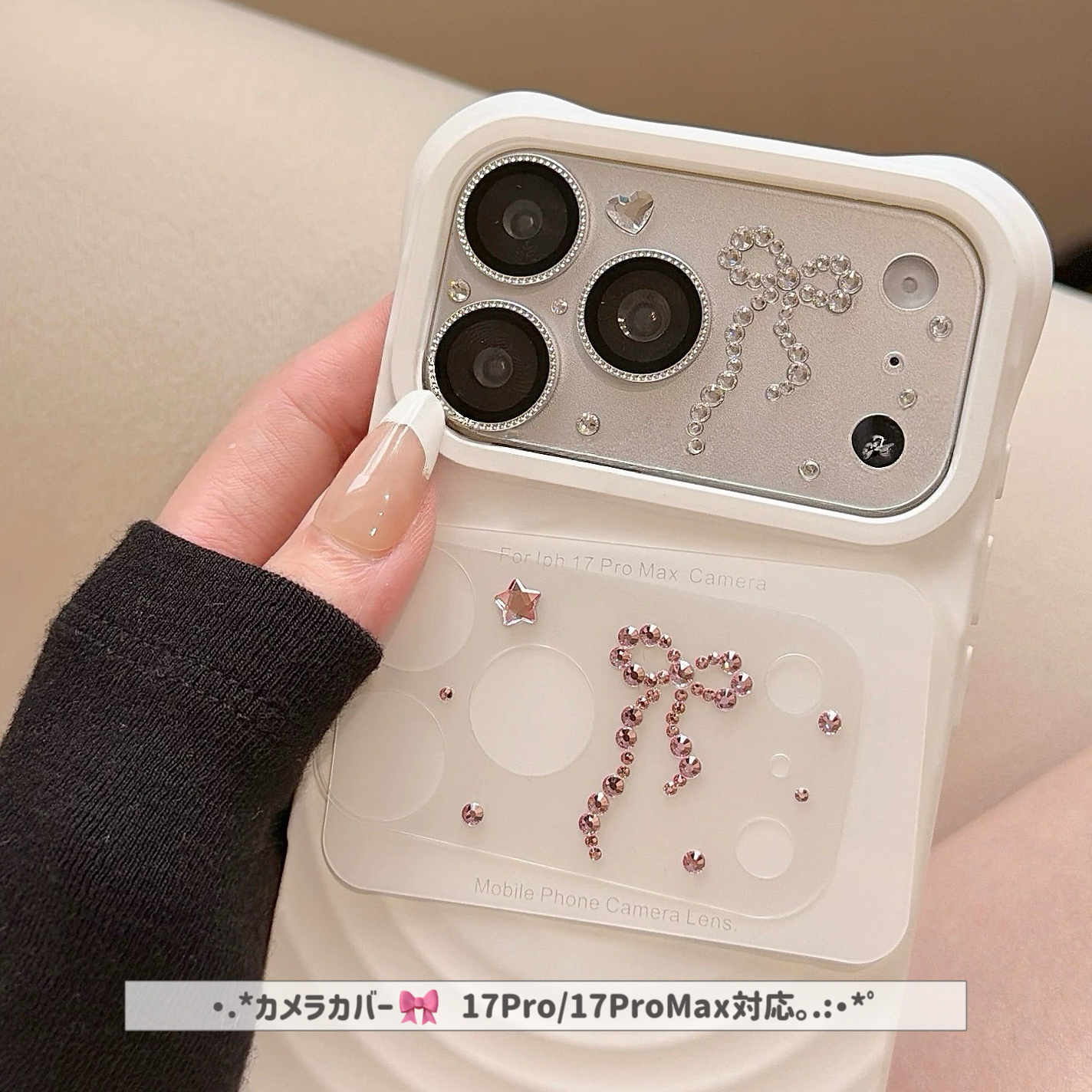シルバーピンクリボンジュエルカメラカバー