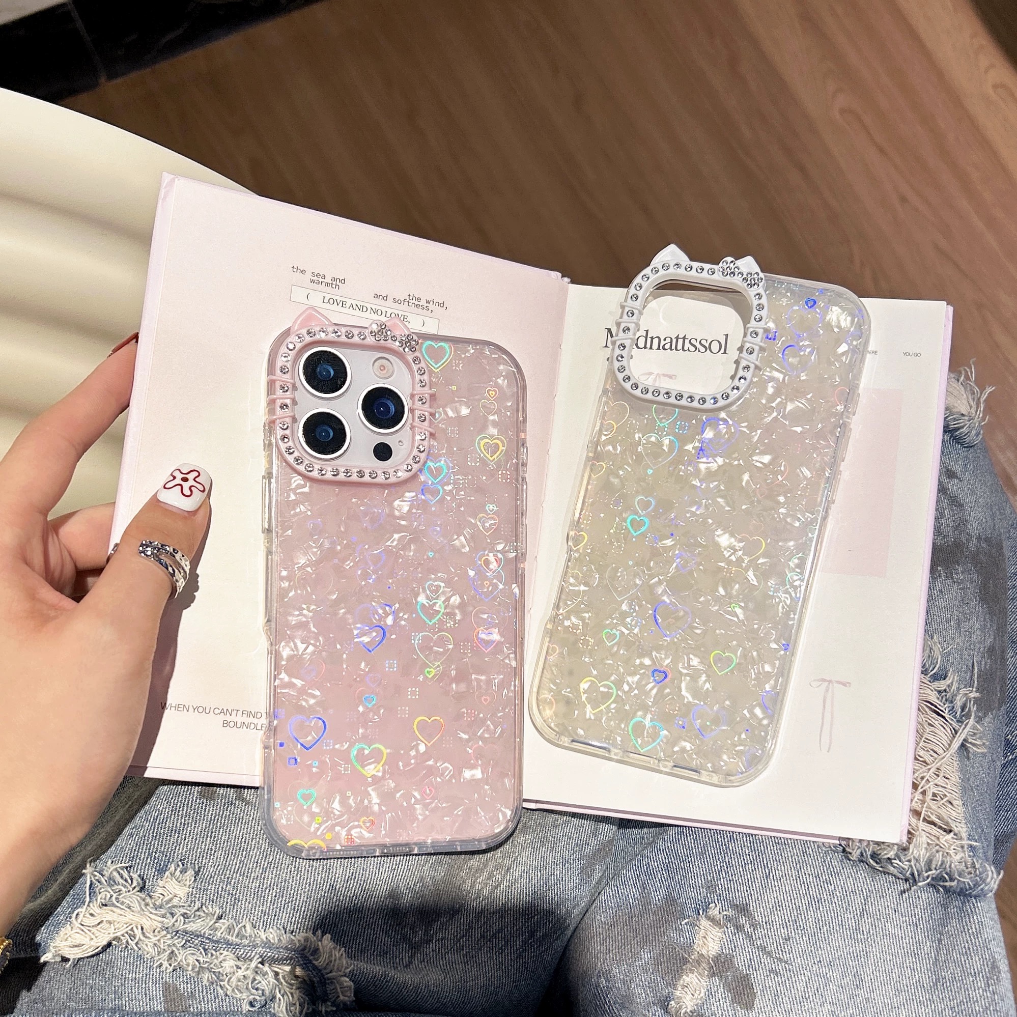 Heart laser aurora cat jewel iphoneケース