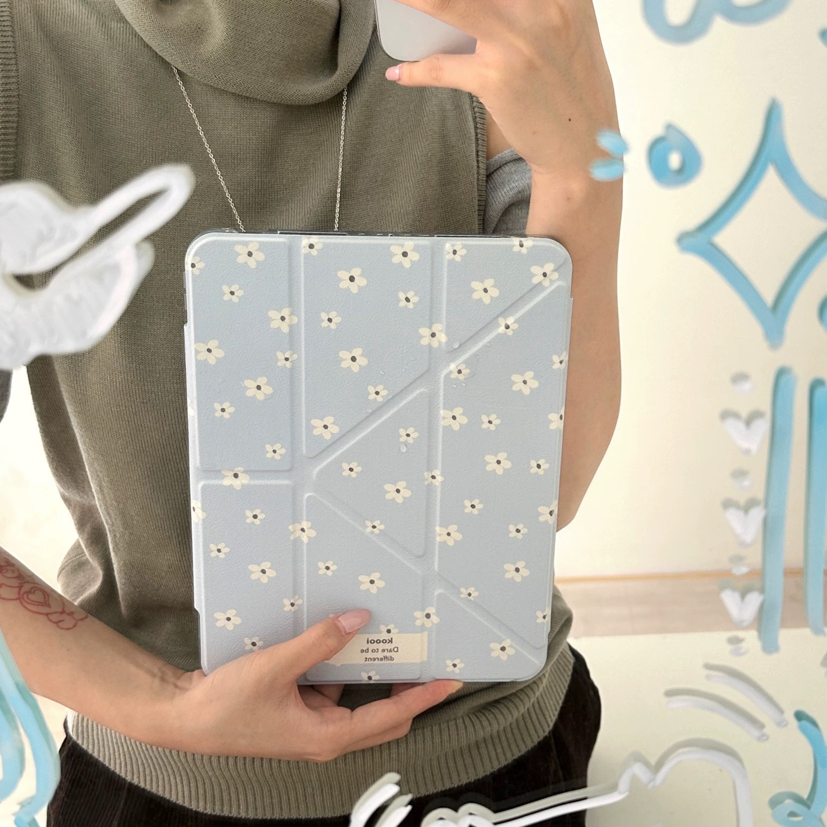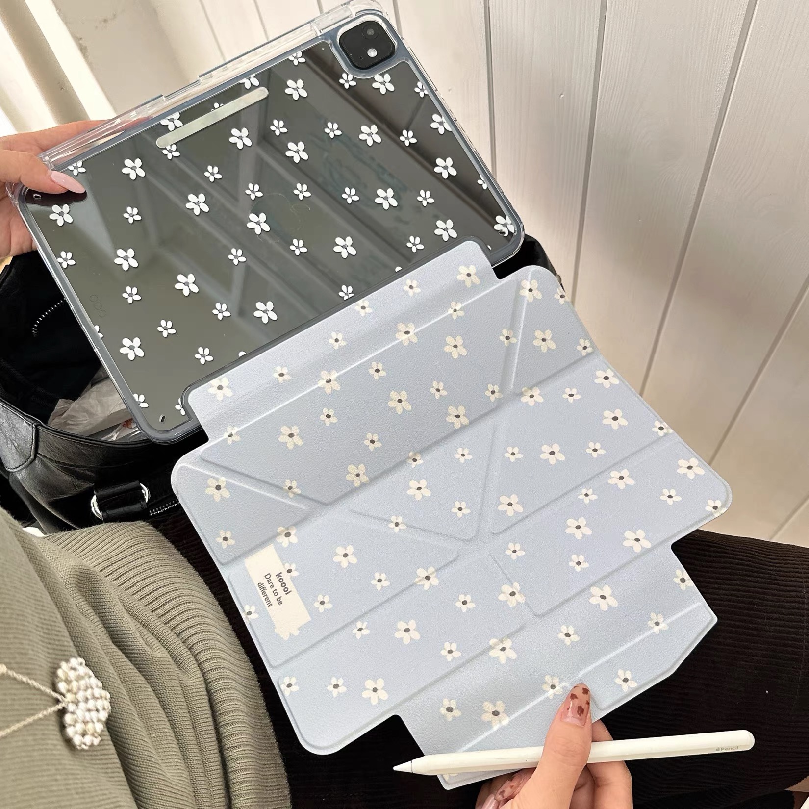 ホワイトフラワーブルー ipadケース アイパッドケース