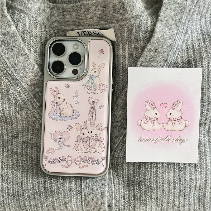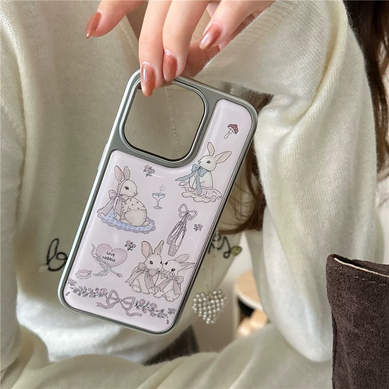 ピンクウサギちゃんシルバーサイド iphoneケース