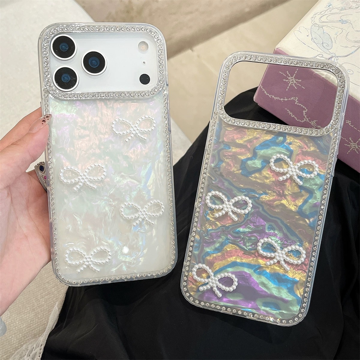 ホワイトシェルジュエルリボンストラップ付き iphoneケース