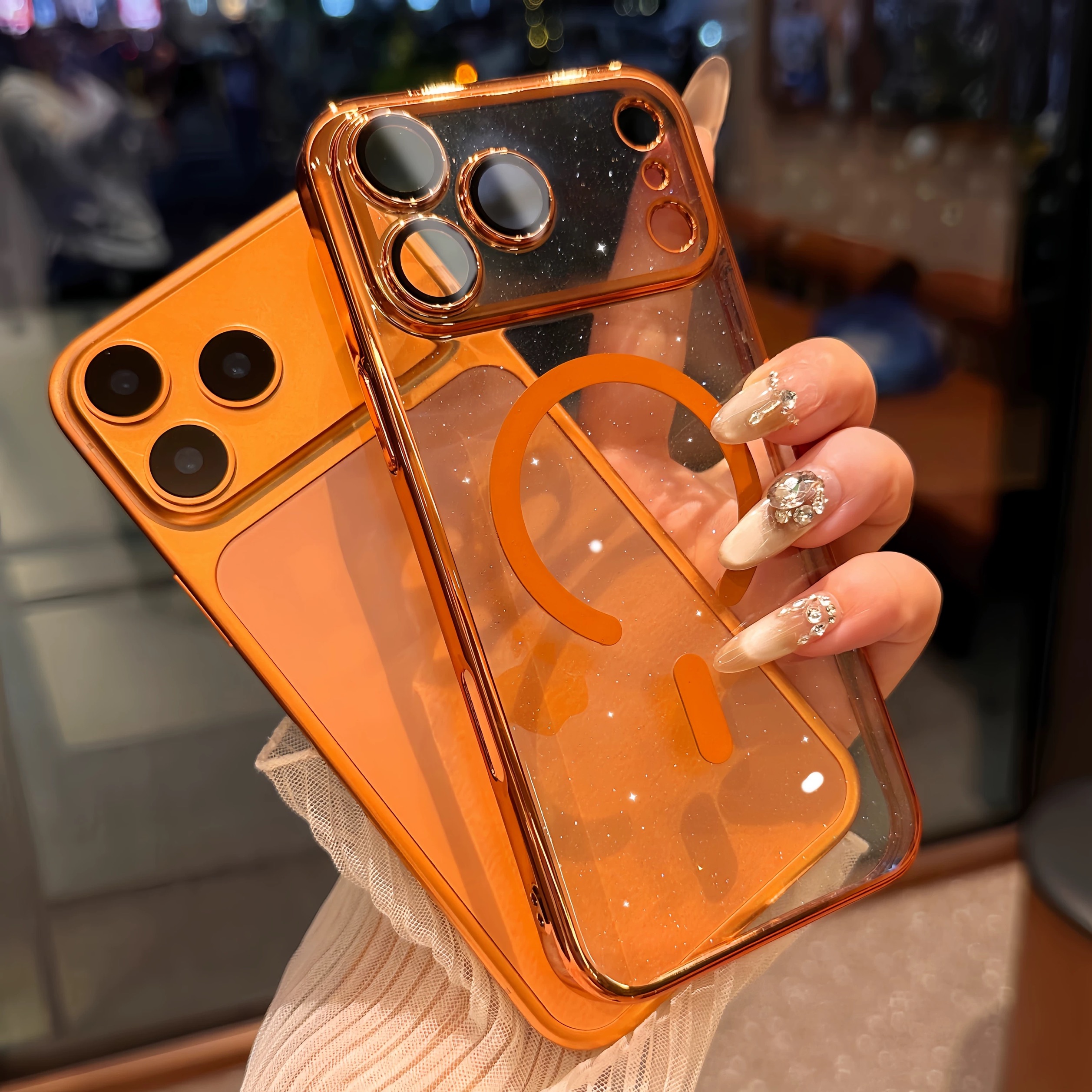 Orange powder glitter metal iphoneケース