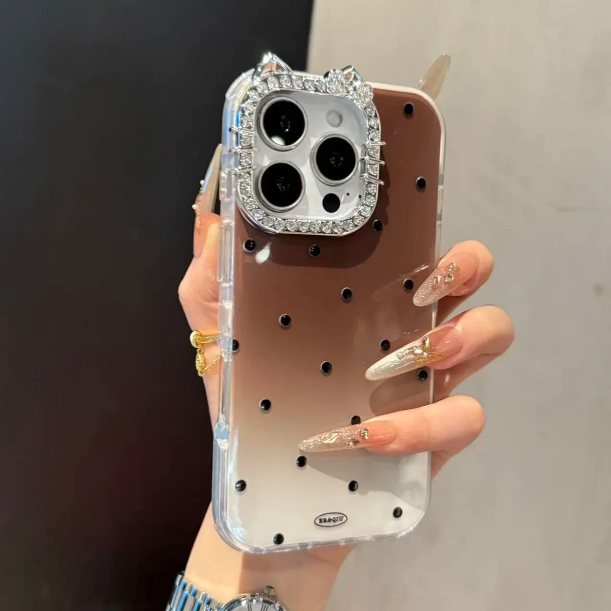 グラデーション ドット柄 シルバー猫耳ジュエル iphoneケース